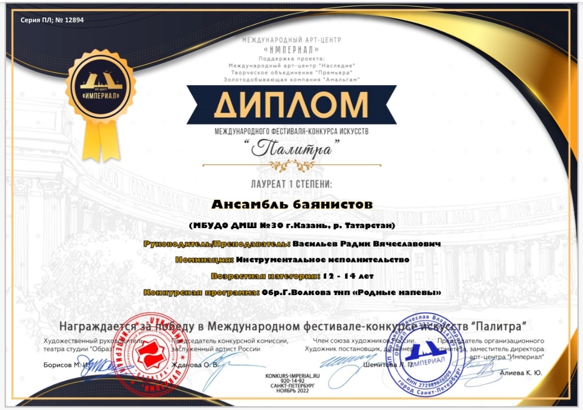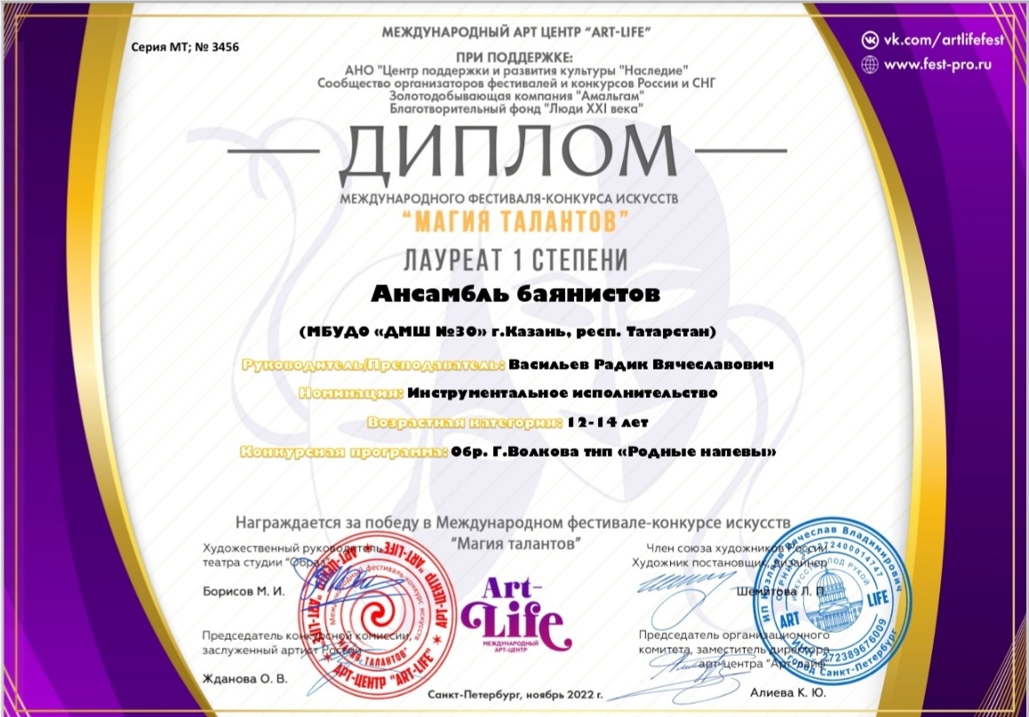 Международный фестиваль-конкурс искусств "Магия талантов" - ансамбль баянистов - I место
