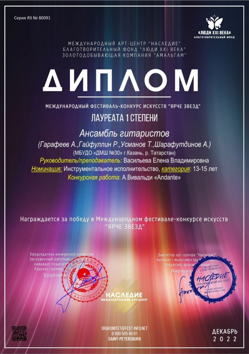 Международный фестиваль-конкурс искусств "Ярче звезд" - ансамбль гитаристов - I место