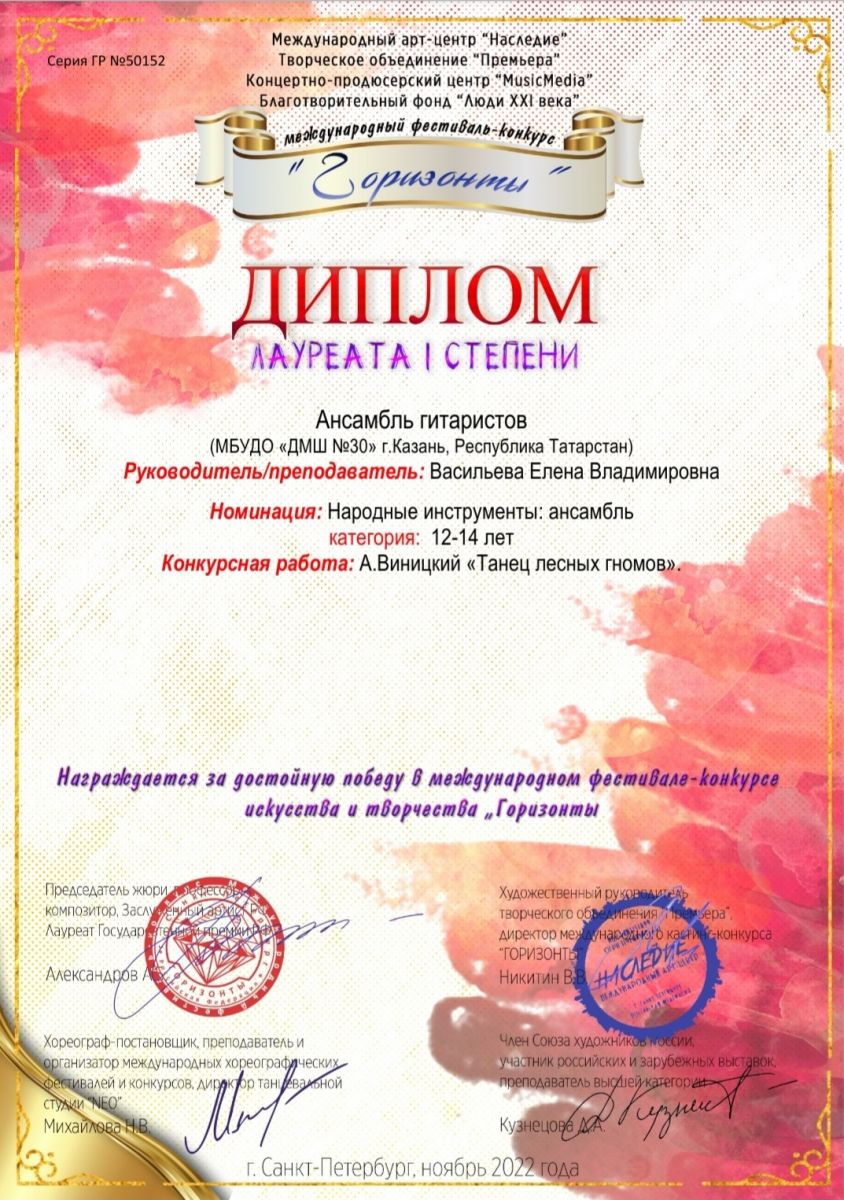 Международный фестиваль-конкурс "Горизонты" - ансамбль гитаристов - I место