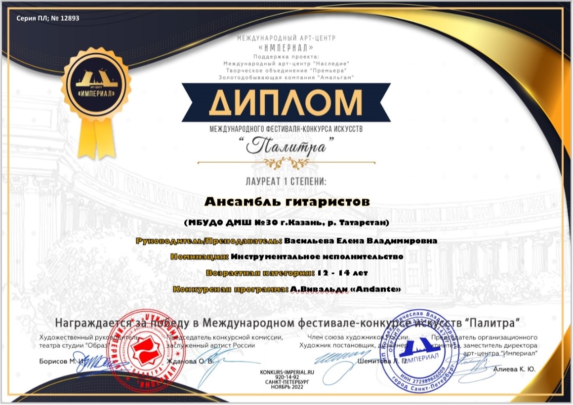 Международный фестиваль-конкурс "Страна талантов" - ансамбль гитаристов - I место