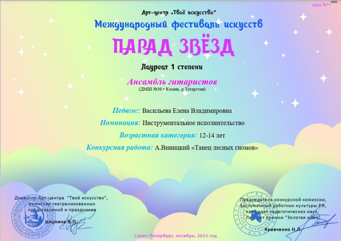 Международный фестиваль искусств "Парад звезд" - ансамбль гитаристов - I место