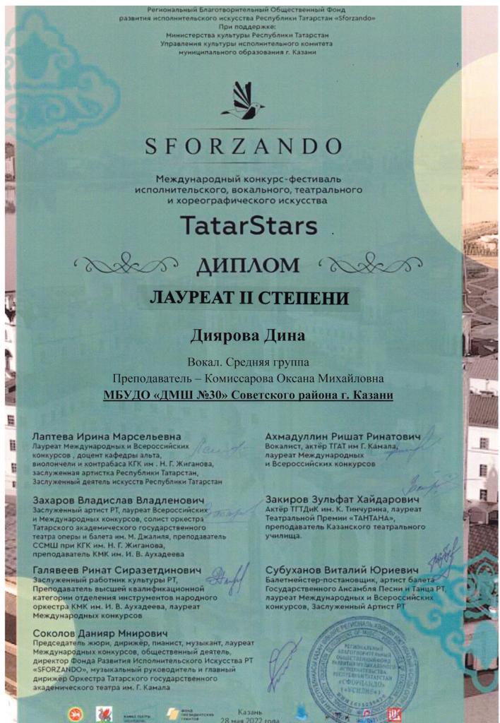Международная музыкальная премия "SFORZANDO" - Мамыкина Софья - II место
