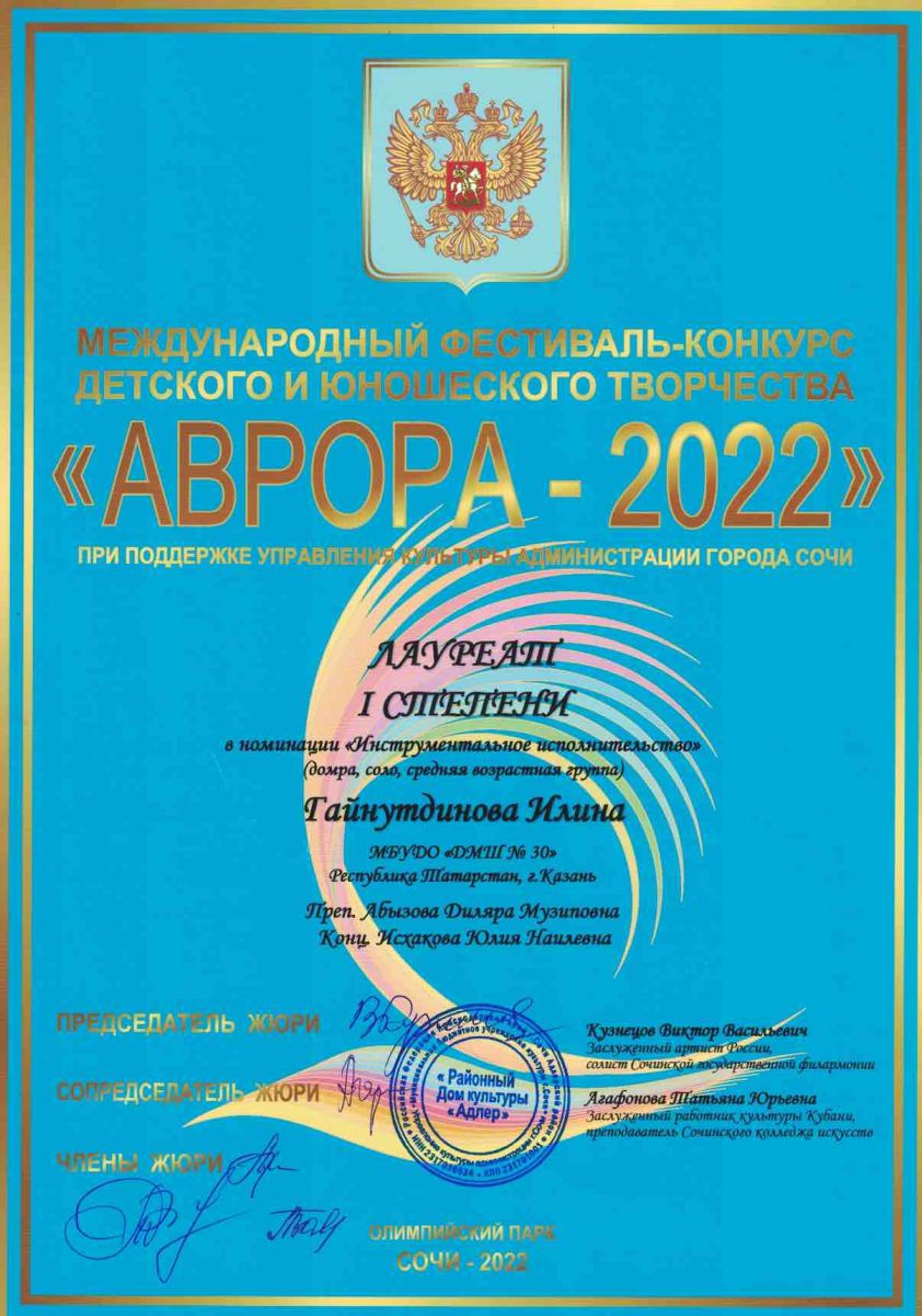 Международный фестиваль-конкурс "Страна талантов" - Гатауллина Алия - I место