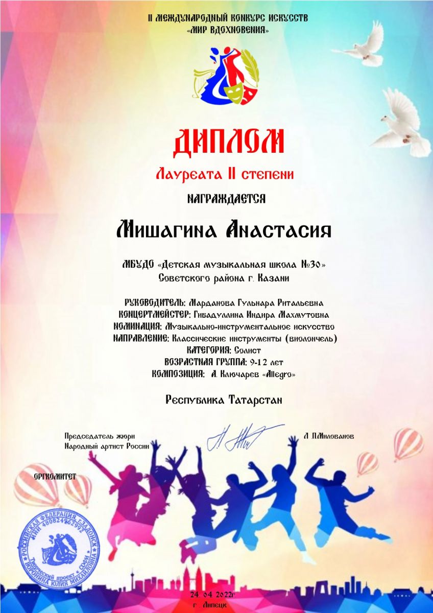 II Международный конкурс искусств "Мир вдохновения" - Мишагина Анастасия - II место