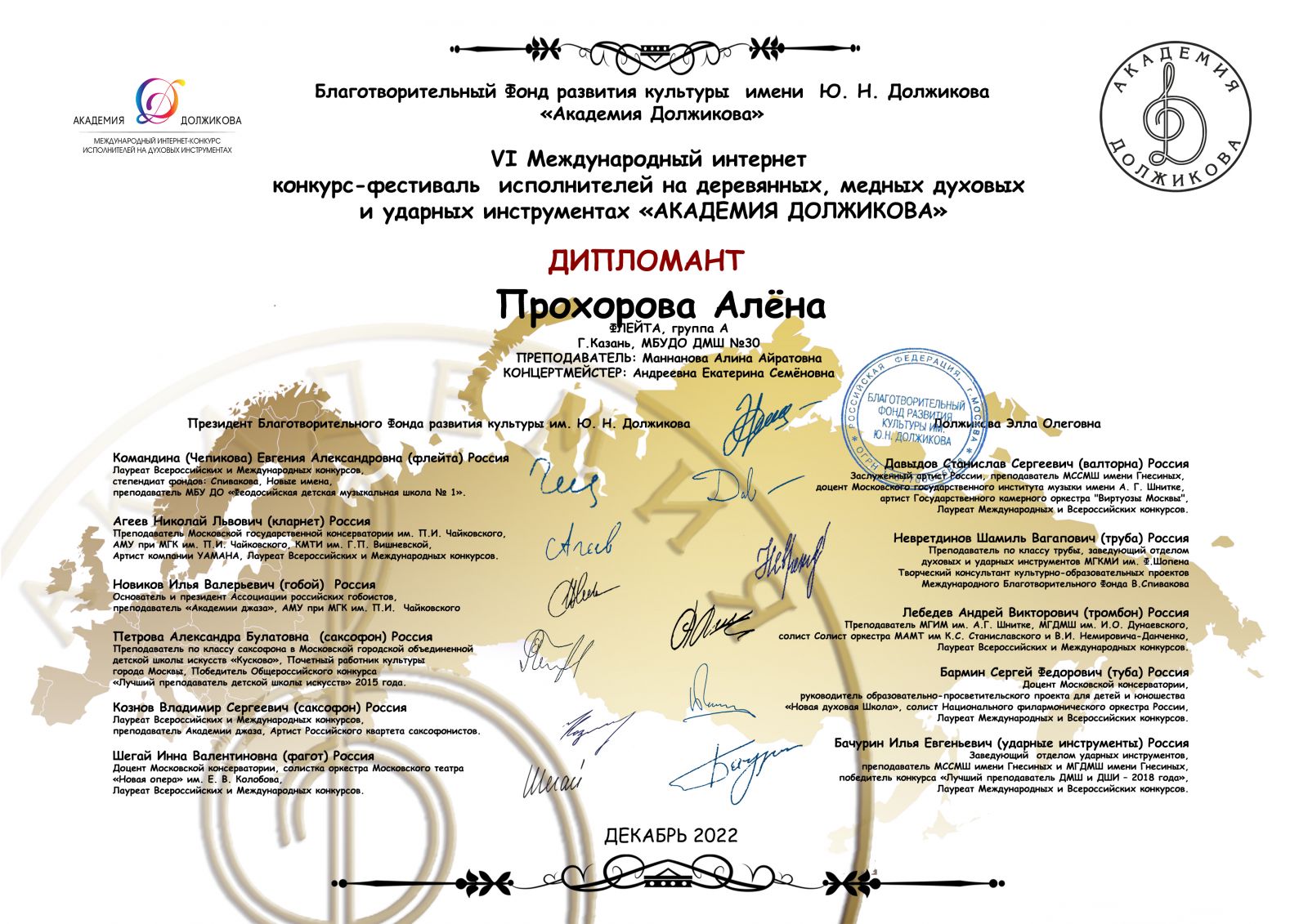 Международный конкурс исполнителей на духовых инструментах "Moscow Wind" - Прохорова Алена - диплом