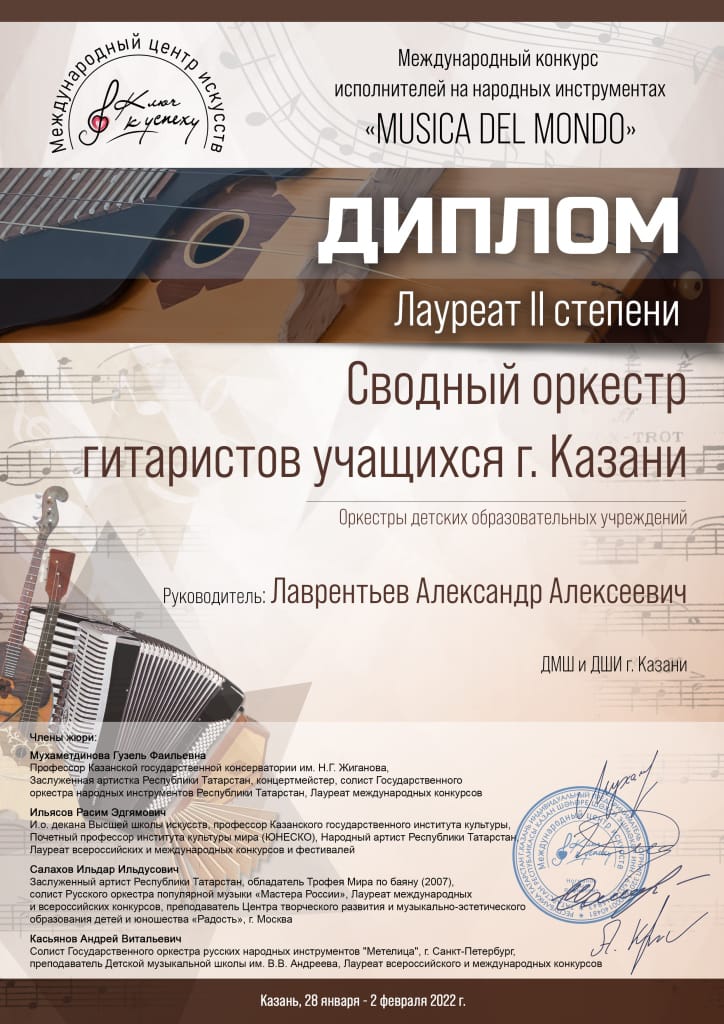 Международный фестиваль-конкурс искусств "Магия талантов" - ансамбль гитаристов - I место