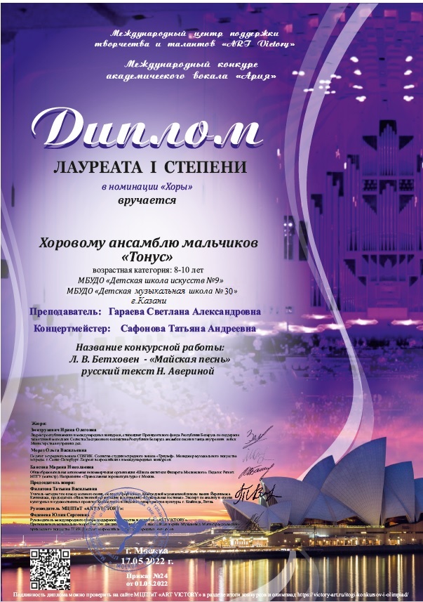 Международный конкурс академического вокала "Ария" - хоровой ансамбль мальчиков "Тонус" - I место