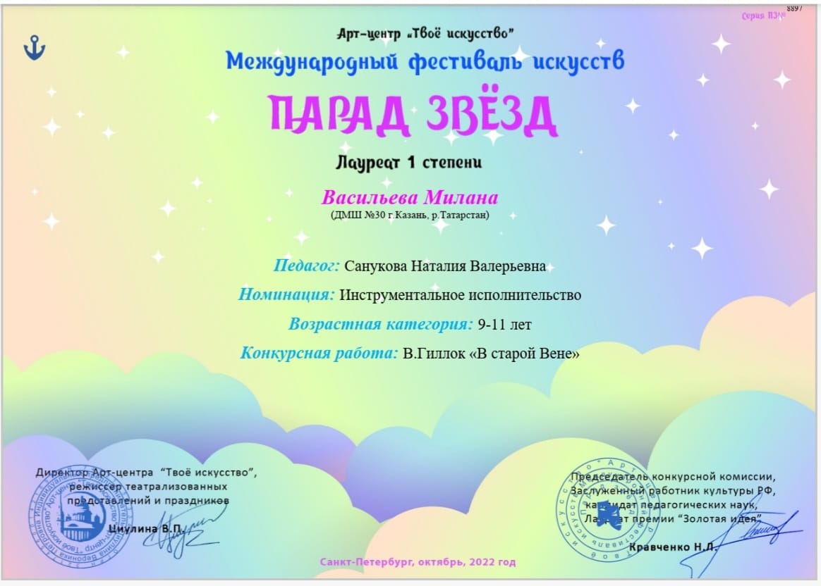 Международный конкурс-фестиваль искусств "Звездопад" - Гильмутдинова Дарина - лауреат
