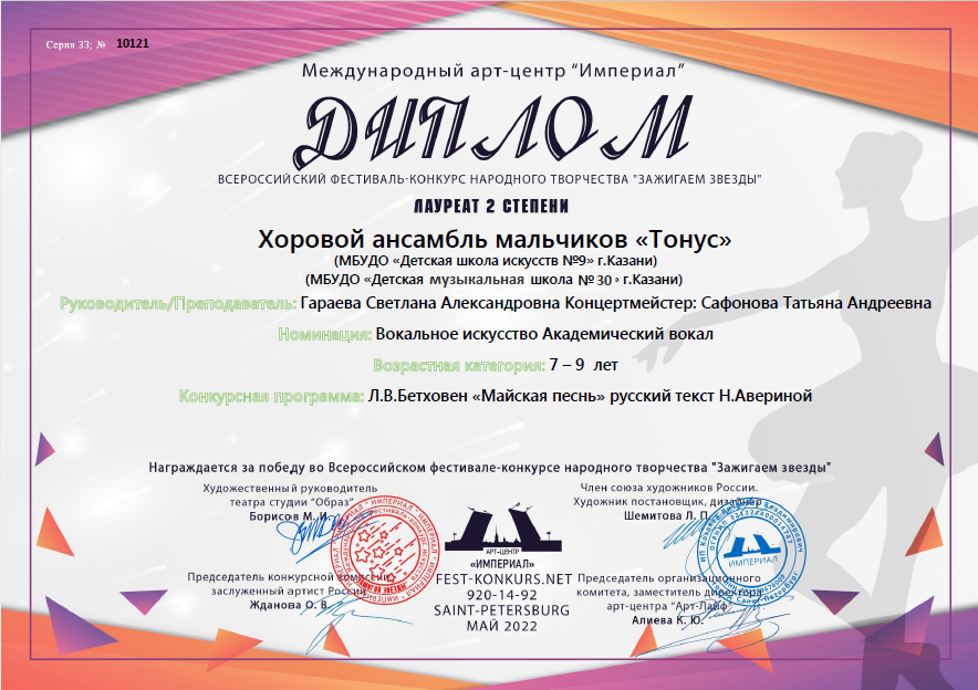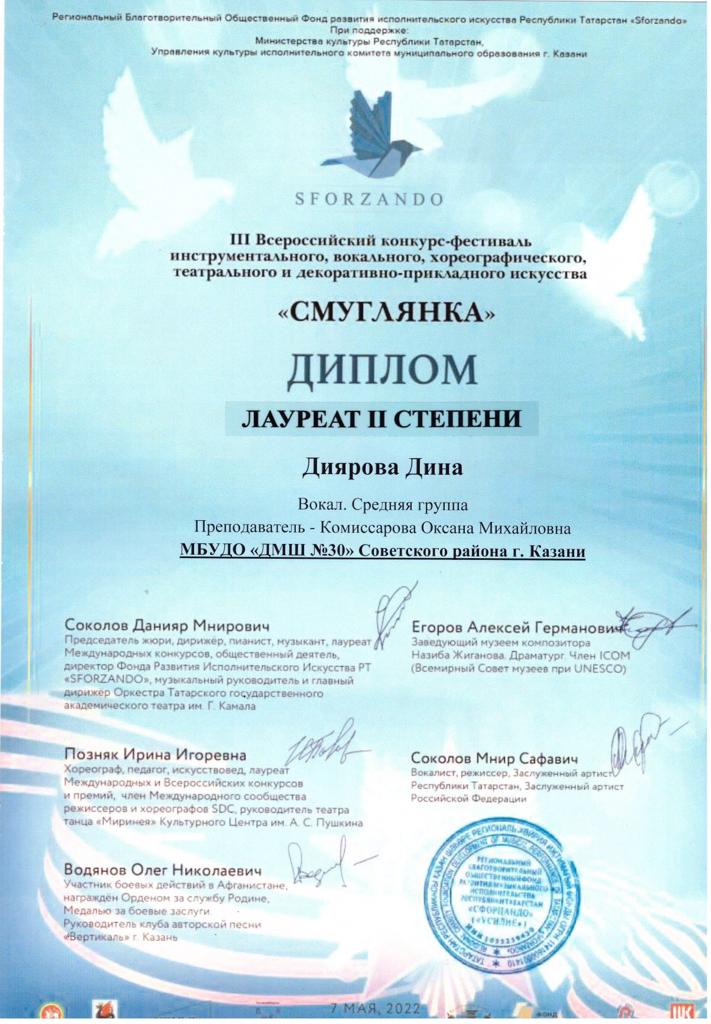 Всероссийский конкурс для детей и молодежи "Творческий поиск" - Гильмутдинова Дарина - II место