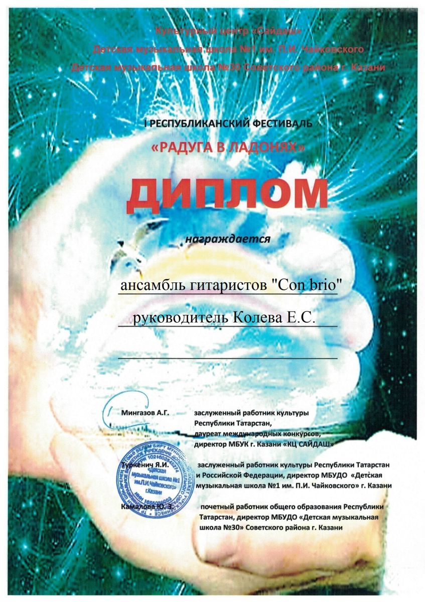 I Республиканский фестиваль "Радуга в ладонях" - ансамбль гитаристов "Con brio" - диплом