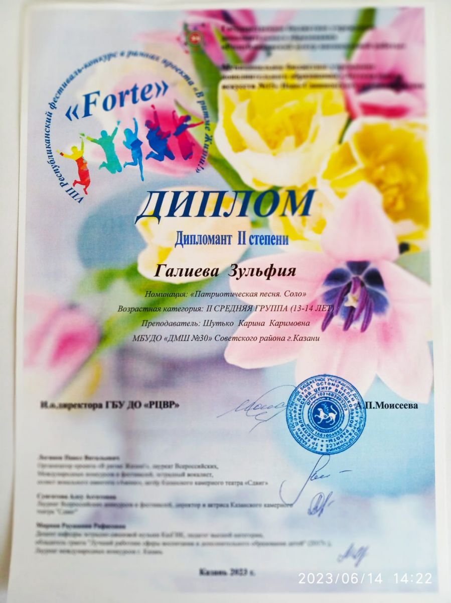 VIII Республиканский фестиваль-конкурс "Forte" - Галиева Зульфия - диплом II степени