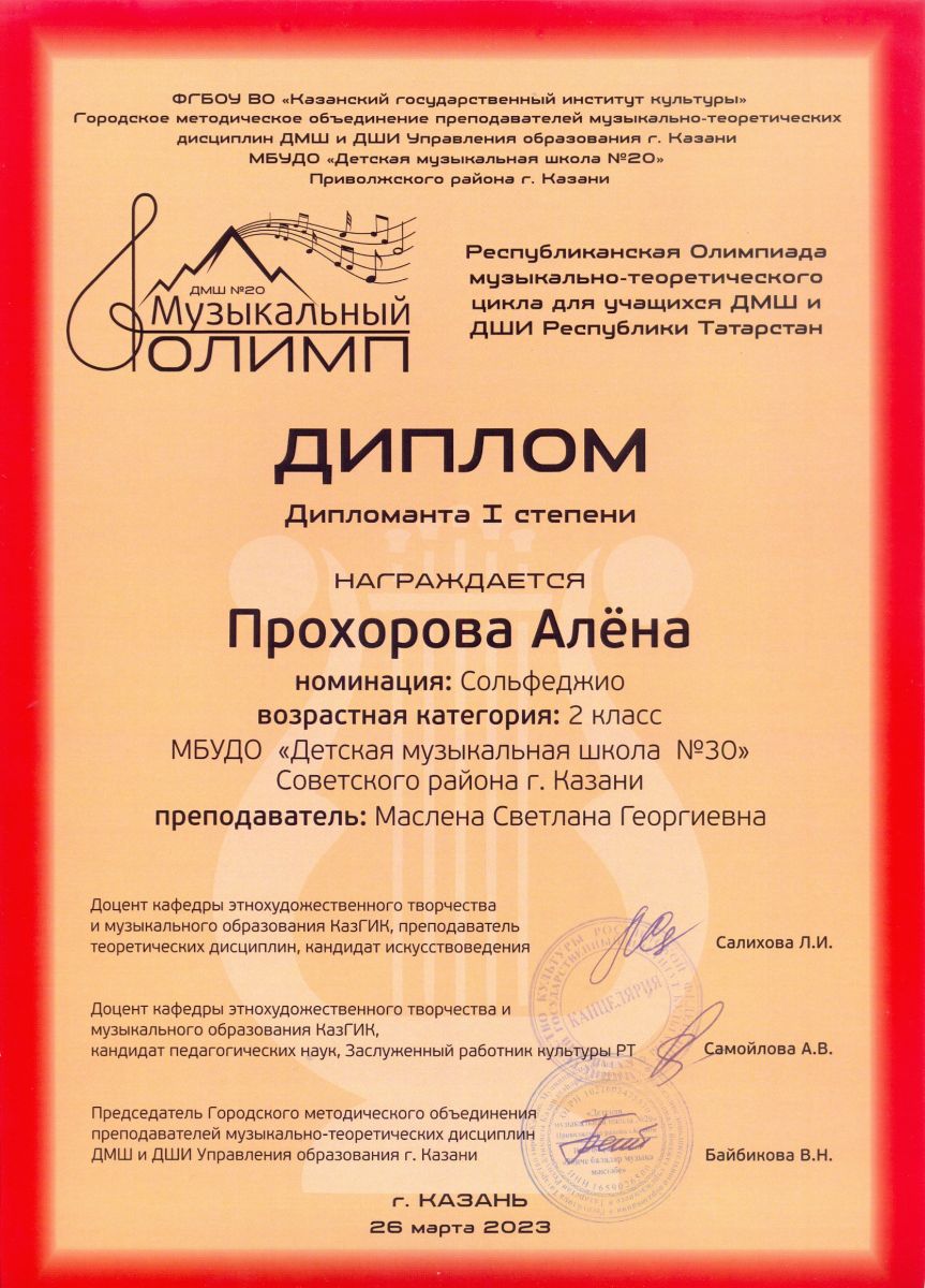 VIII Республиканский фестиваль-конкурс "Золотой камертон" - Прохорова Алёна - II место