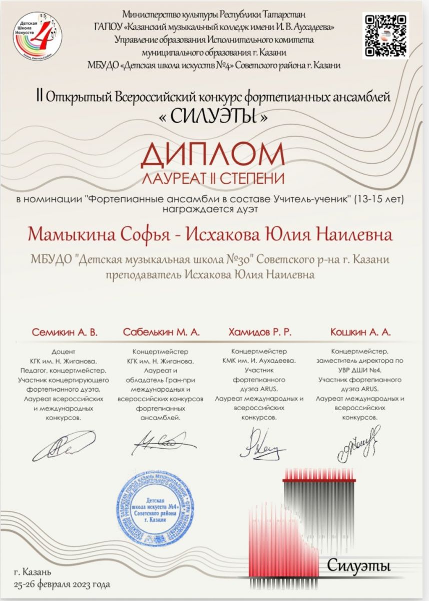 Международный конкурс фортепианного искусства "Art Royle" - Садыкова А.В. - II место