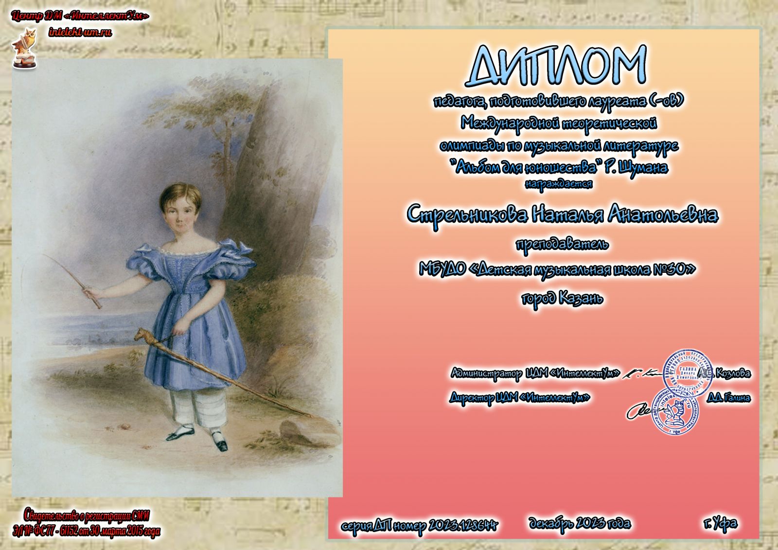 Международная викторина по музыке "Музыкальные жанры" - Стрельникова Н.А. - диплом