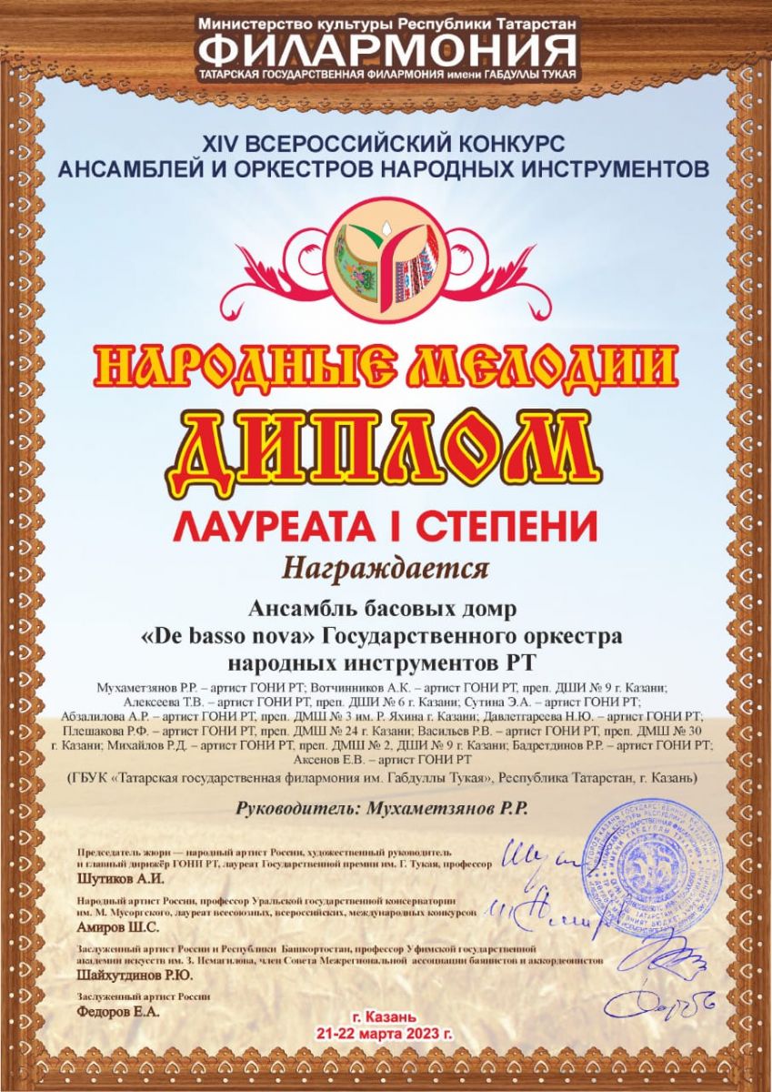 Международный конкурс "Музыкальная палитра мастерства" - Камалова Ю.З. - I место
