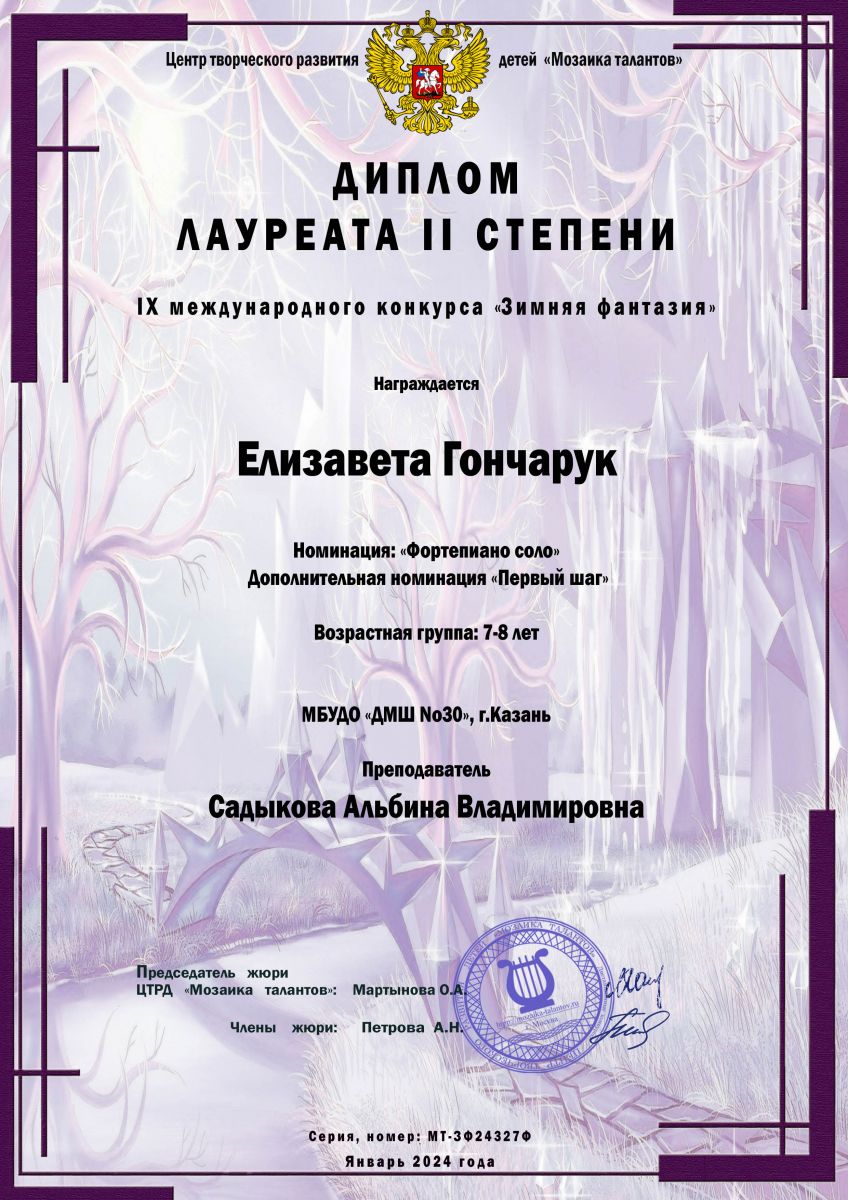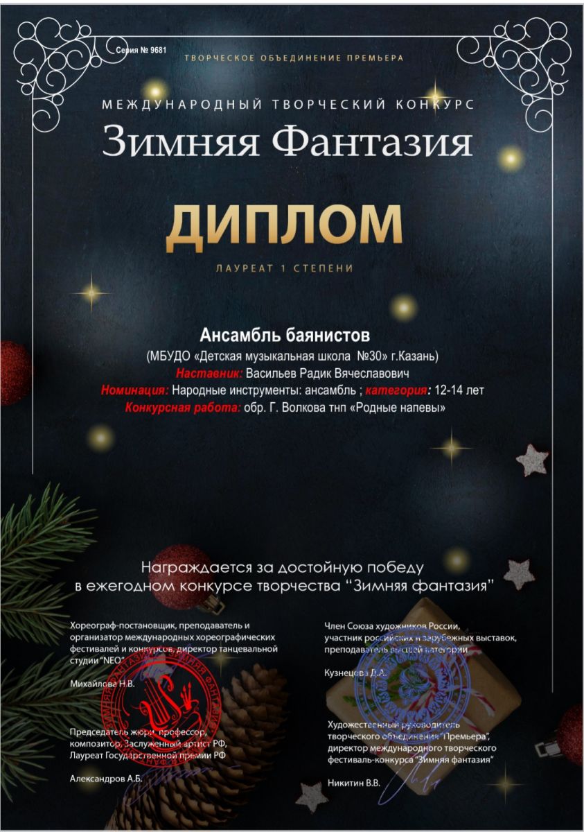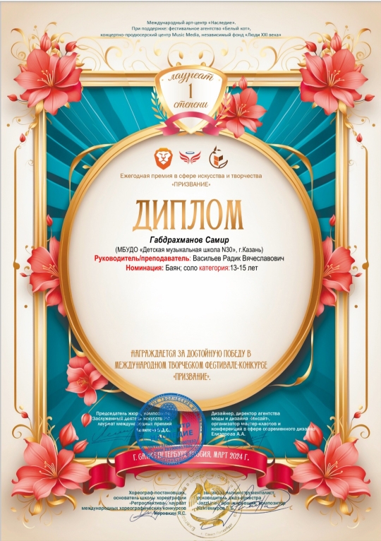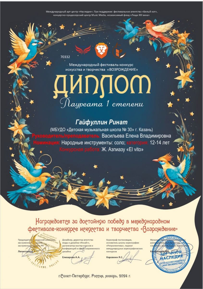 Международный конкурс исполнительского искусства "Allegro. Vivo. Presto" - Вильданов Булат - I место