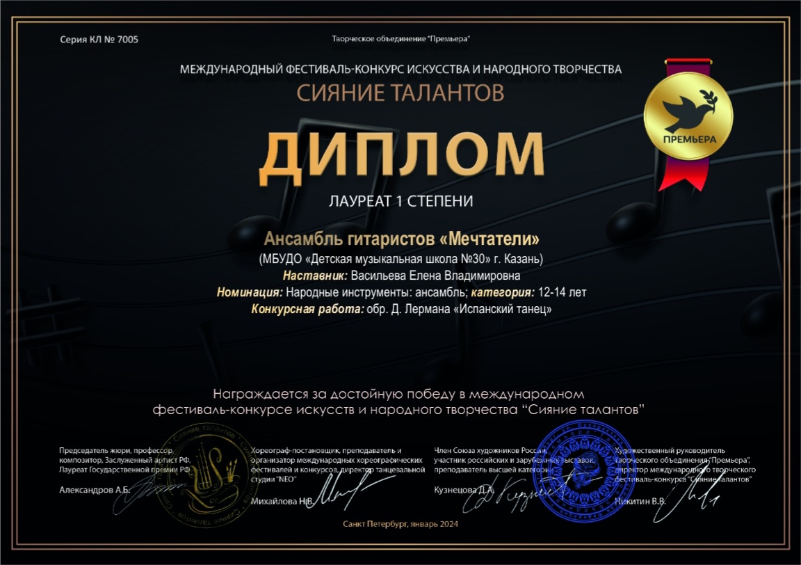Международный фестиваль-конкурс искусства и творчества "Возрождение" - ансамбль гитаристов - I место