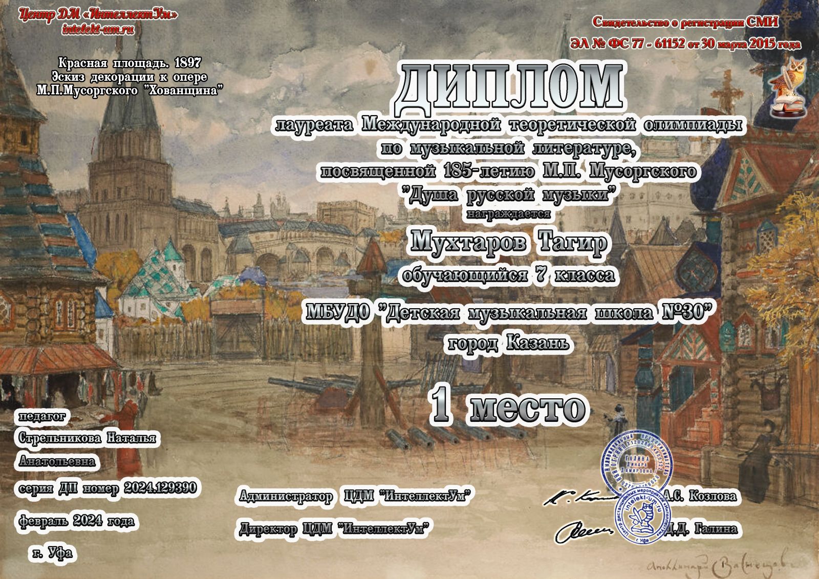 Муниципальное бюджетное учреждение дополнительного образования «Детская музыкальная школа №30» Советского района г.Казани
