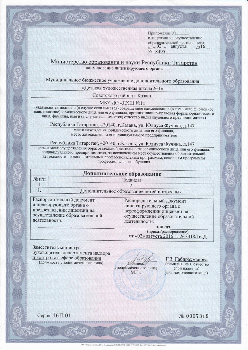 | Короткое название: | МБУ ДО "ДХШ №1" Советского района г.Казани |