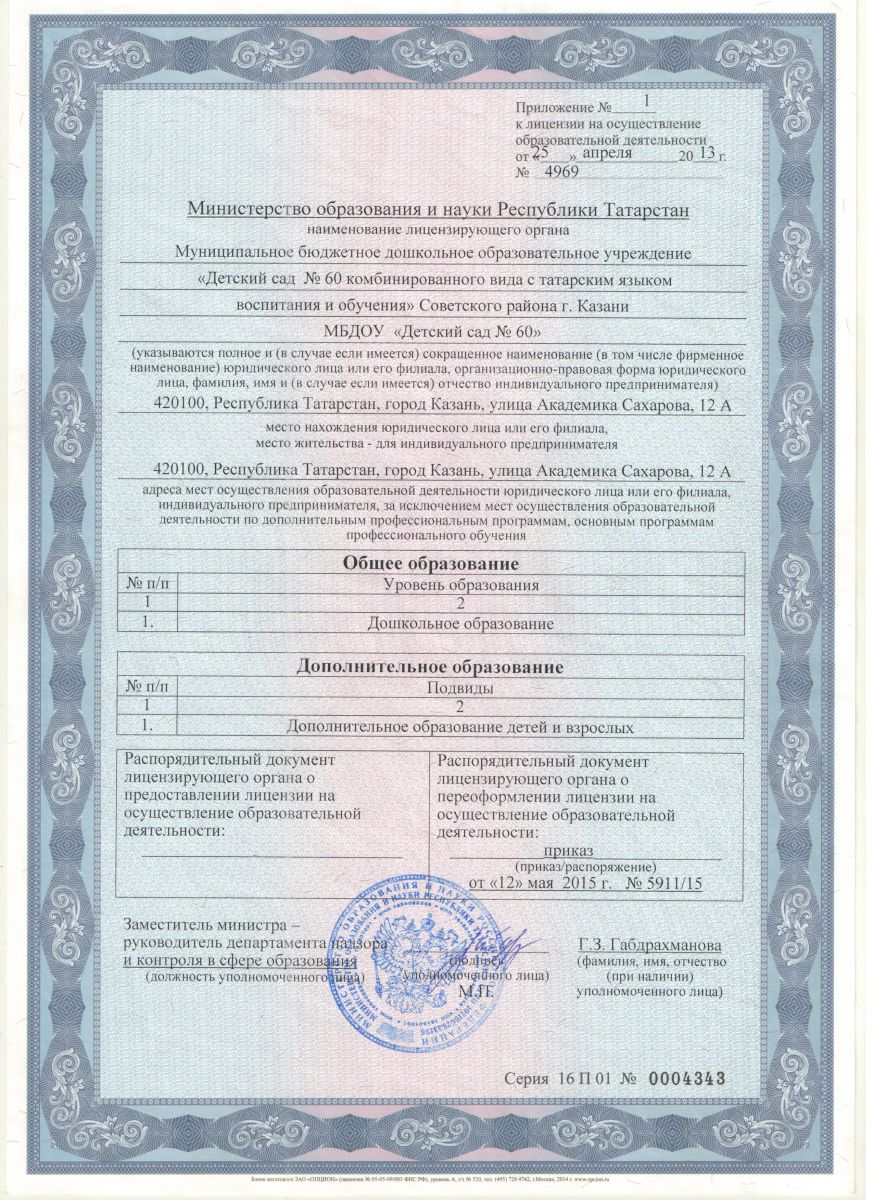 Муниципальное бюджетное дошкольное образовательное учреждение «Детский сад № 60 комбинированного вида с татарским языком воспитания и обучения» Советского района г. Казани