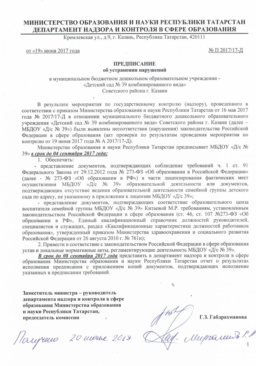 Акт проверки органом государственного контроля (надзора) в сфере образования от 15 декабря 2017 года