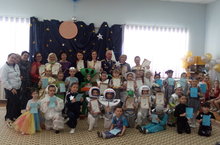 Сегодня у нас прошел праздник ко Дню Космонавтики. Ребята каждой группы инсценировали песни, посвященные полетам в космос. Наш гость - военный летчик, майор в отставке Земалов И.А., дедушка нашей воспитанницы. В беседе с детьми он дал советы о том, как стать сильными, крепкими и мужественными чтобы покорить небо. Дети были награждены дипломами за лучшие космические костюмы.
