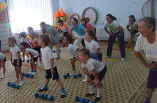 Для детей старшего дошкольного возраста и их родителей инструктор по физической культуре Лоскутова О.Л. провела "Веселый фитнес для мам и дочек". Все участники мероприятия получили огромный заряд бодрости и хорошего настроения.