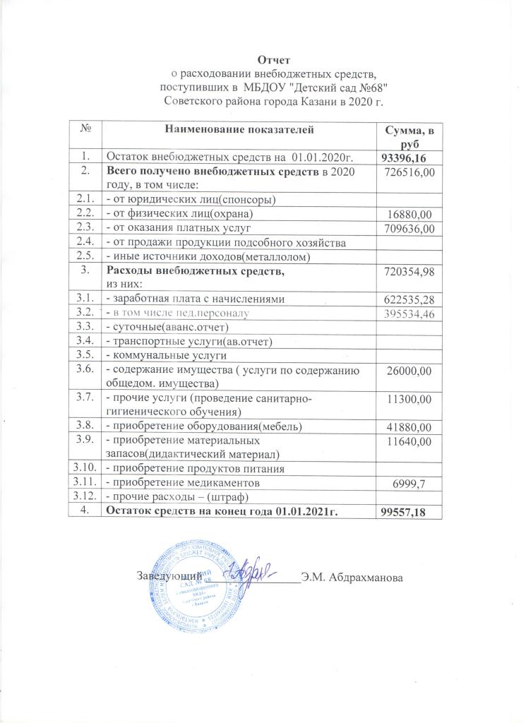 Отчет о привлечении и расходовании внебюджетных средств за 2020 год
