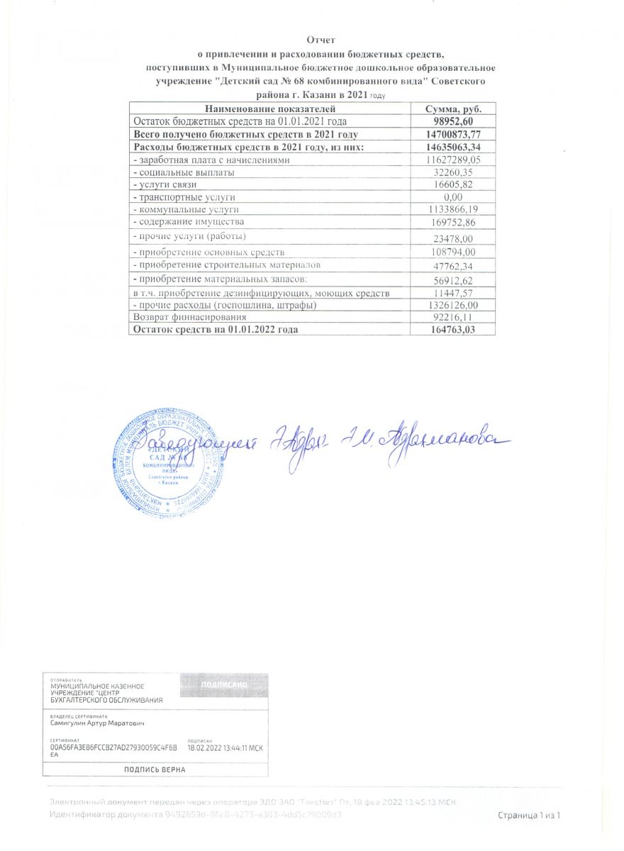 Отчет о привлечении и расходовании бюджетных средств в 2021 году