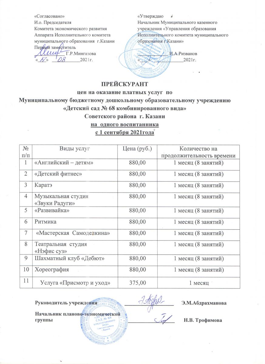 Прейскурант цен на оказание платных услуг