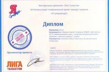 Поздравляем участников XX Регионального телевизионного проекта - конкурса талантов "Я суперзвезда!" - воспитанница Сабирова Зарина, музыкальный руководитель Рахимова Лейсан Айратовна.