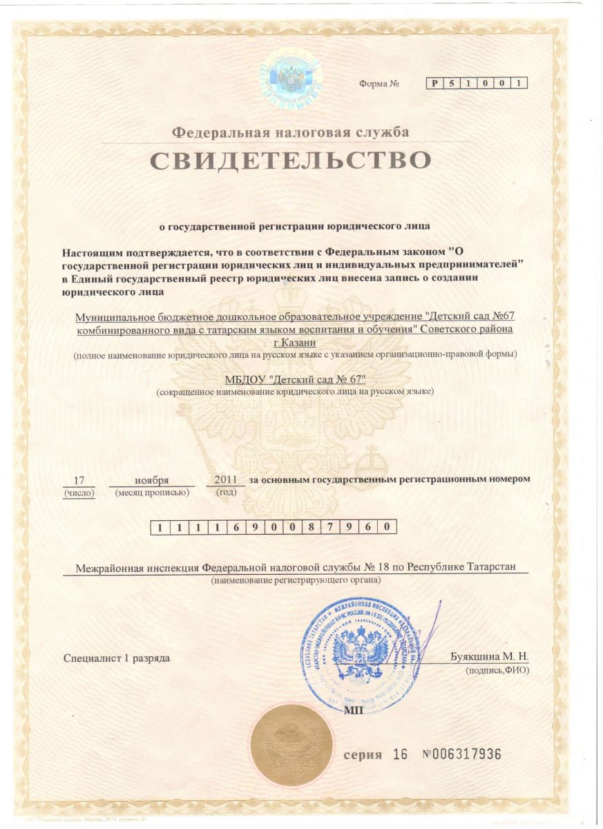 ИНН МАДОУ "Детский сад №67"