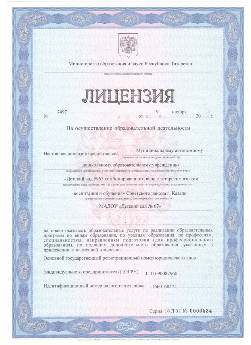 Муниципальное автономное дошкольное образовательное учреждение «Детский сад № 67 комбинированного вида с татарским языком воспитания и обучения» Советского района г. Казани