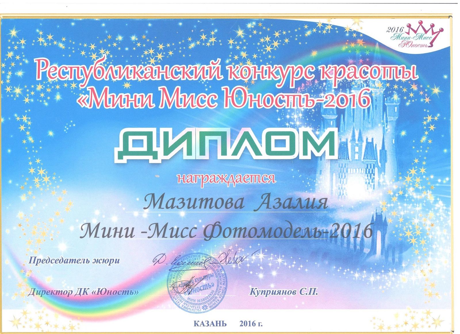 Республиканский конкурс красоты "Мини Мисс Юность - 2016"