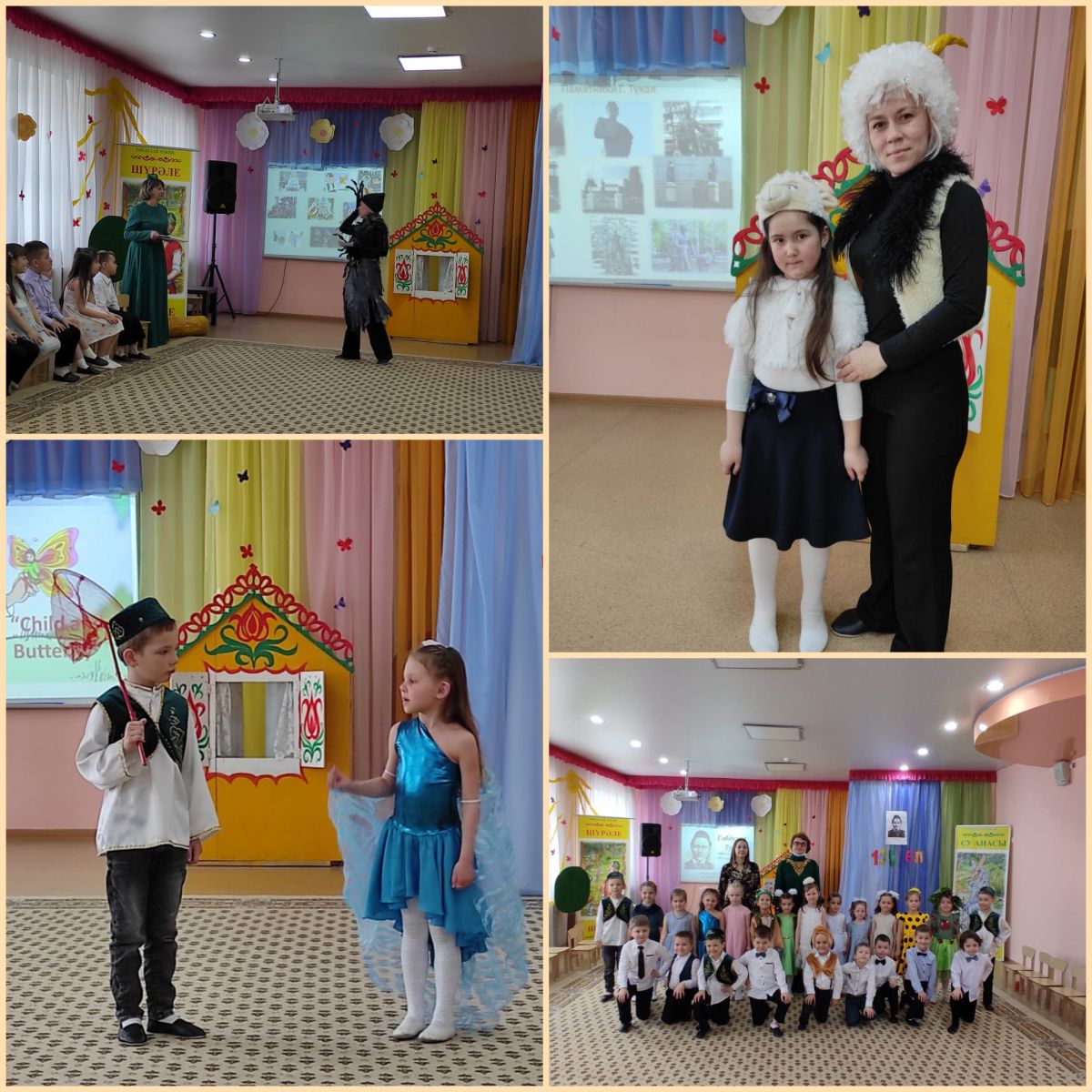 В детском саду прошла выставка детских рисунков и поделок, посвященная творчеству Г. Тукая. Дети совместно с родителями нарисовали множество рисунков на различные сюжеты из произведений великого поэта. Здесь и герои из сказок "Коза и баран", "Водяная", "Шурале", а также герои стихов "Забавный ученик", "Ребенок и мотылек", "Ласточка" и др. Спасибо всем участникам выставки!Балалар бакчасында Г.Тукай иҗатына багышланган балалар рәсемнәре һәм кул эшләнмәләре күргәзмәсе оештырылды. Балалар ата-аналар белән берлектә бөек шагыйрь әсәрләреннән төрле сюжетларга бик күп рәсемнәр ясадылар. Биредә "Кәҗә һәм сарык", "Су анасы", "Шүрәле" әкият геройлары, шулай ук "Кызыклы шәкерт", "Бала белән күбәләк", "Карлыгач" һ. б. әкият геройлары да бар.Күргәзмәдә барлык катнашучыларга да рәхмәтебезне беледерәбез!