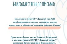Муниципальное бюджетное дошкольное образовательное учреждение «Детский сад № 40 комбинированного вида с татарским языком воспитания и обучения» Советского района г. Казани - новости