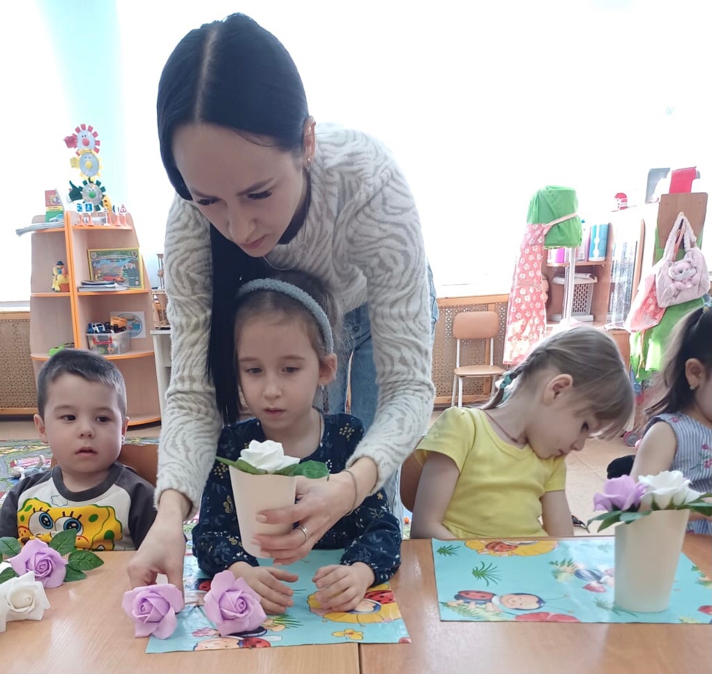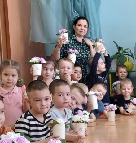Вот и сегодня, Алсу Маратовна и Айдар Айдарович, родители Даниса Закирова, в преддверии международного женского дня провели с воспитанниками мастер-класс: «Мыльные цветы для мамы».