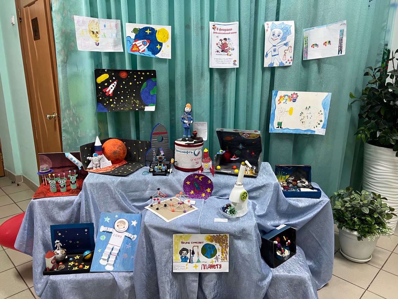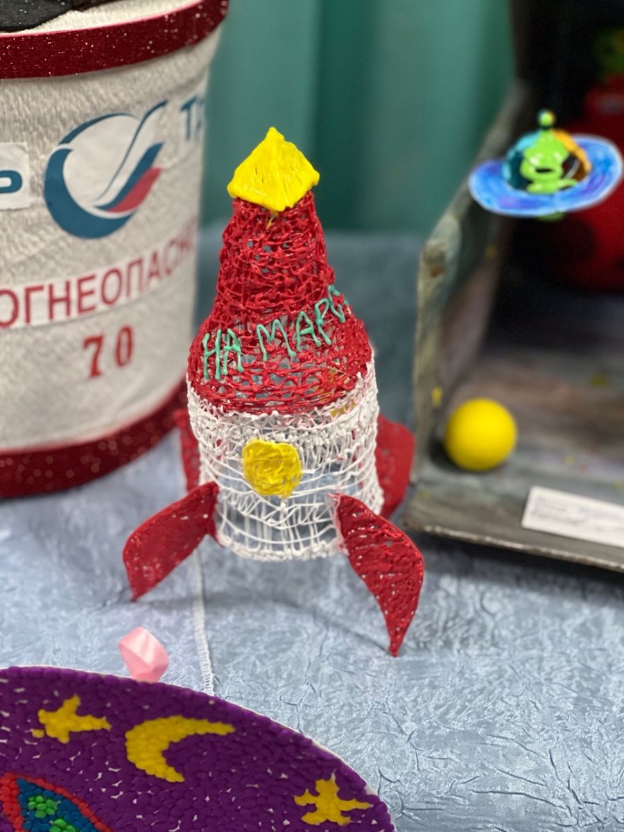 На выставке были предоставлены творческие работы по таким тематическим направлениям, как «Мир в недалеком будущем», «Профессия ученый», «Наука спасет планету», «Экспедиция на Марс» и др. Выставку украсили оригинальные поделки и рисунки, выполненные в различной технике: акварель, гуашь, пластилинография, паье - маше, техническое моделирование и т.д.