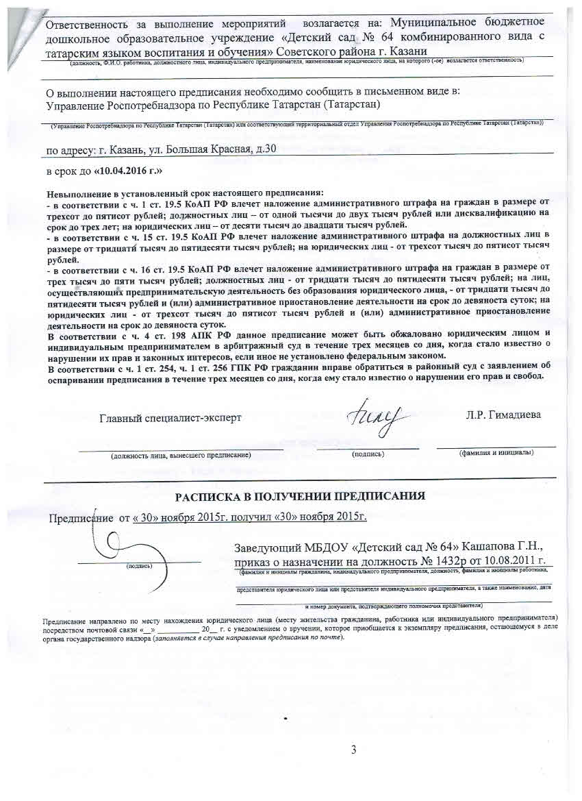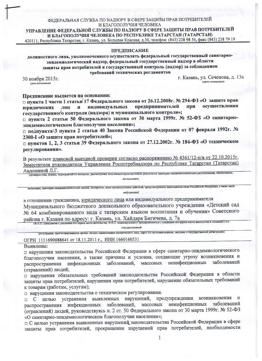 предписание- Управление роспотребнадзора по РТ