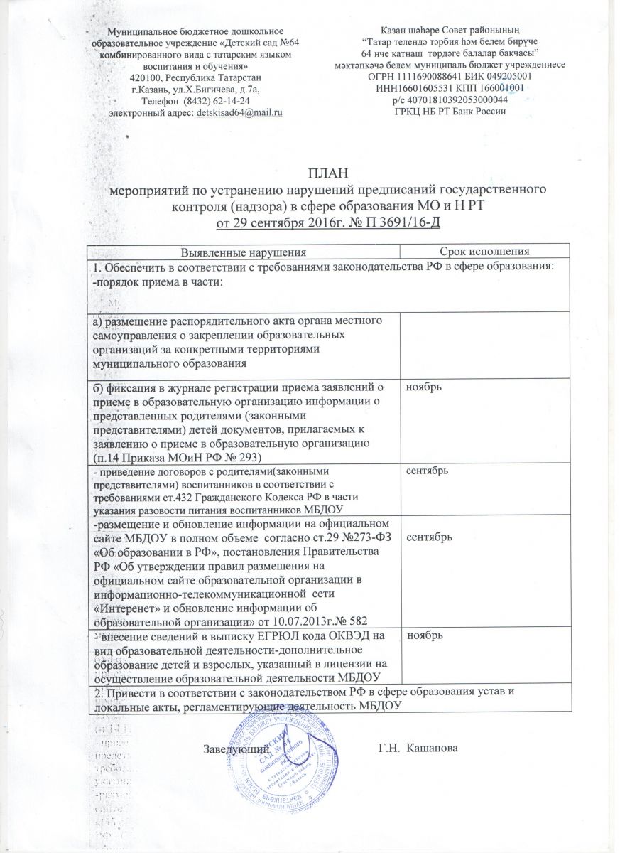 план мероприятий по устранению нарушений на предписание от 29_09_16