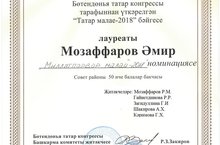 Поздравляем, воспитанника старшей группы №1, Музаффарова Амира, победителя в отборочном туре городского конкурса "Татар малае - 2018" среди детей дошкольного возраста.