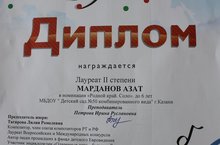 Наш воспитанник Марданов Азат удостоился звания лауреата II степени на Всероссийском фестивале-конкурсе детского и юношеского творчества БУДУЩЕЕ РОССИИ в номинации "Родной край. Соло" возрастная категория до 6 лет.