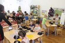 На базе нашего детского сада прошли республиканские курсы переподготовки руководителей ДОУ по проблеме: " Эффективные технологии управления качеством образовательного процесса в ДОУ". Для слушателей курсов был предложен педагогический маршрут, где педагоги делились опытом своей работы. Воспитатель Опарина Г.Н. показала развитие интеллектуальных способностей при подготовке детей к школе через игровые технологии используя палочки Кюизенера; воспитатель Гатина Г.Р. продемонстрировала использование конструкторов "Полидрон" в формировании познавательной активности у детей; Воспитатель Воронцова А.О. и музыкальный руководитель Петрова И.Р. вместе с детьми среднего возраста отправились в страну музыкальной сказки. (Интегрированная ОД в области познание и художественно-эстетического развития детей)