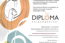 28-29 ноября 2015 года вокальный ансамбль "Игрушка" МБДОУ "Детский сад № 50" удостоился звания дипломанта I степени в I Международном фестивале-конкурсе детского и юношеского творчества "ЗОЛОТАЯ ЛИРА".