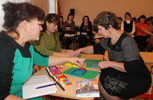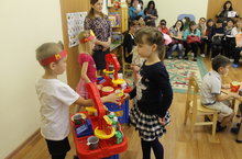 На базе нашего детского сада прошли республиканские курсы переподготовки руководителей ДОУ по проблеме: " Управление образовательным процессом в условиях реализации ФГОС ДО". Для слушателей курсов был предложен педагогический маршрут, где педагоги делились опытом своей работы. Воспитатель Гарипова Л.Х. показала развитие интеллектуальных способностей детей через игровые технологии используя палочки Кюизенера, блоки Дьенеша; воспитатель Смелова Т.Н. продемонстрировала использование пескотерапии в организации совместной деятельности по коррекции речевых нарушений у детей.