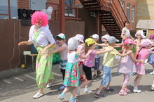 Сегодня у нас в детском саду - самый веселый праздник, посвященный Дню защиты детей. Это праздник всех детей, которые за время учебного года повзрослели, поумнели, стали большими. Дети пели, играли, танцевали. И,конечно же, к нам пришли замечательные гости: Врака - Забияка и клоун Смешинкин. Они проводили с детьми разные интересные игры, спортивные эстафеты.