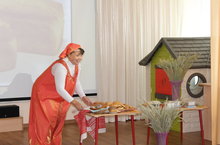 А сегодня наши воспитанники инсценировали татарскую народную сказку " Алтын бөртекләр" на татарском языке, в рамках реализации УМК. В сказке мудрая мама научила своих детей с любовью и заботой выращивать хлеб: "Әтиегезнең җиргә күмгән алтыннары менә шушы икмәк инде ! Тырышлык һәм хезмәт кенә бәхеткә илткән юл ул."