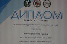 1 декабря на Международном детско-юношеском фестиваль-конкурсе "Музыкальный форсаж" ученица ДМШ №14 Мингазутдинова Карина стала Лауреатом II степени. Преподаватель Акунеева Зарина Александровна. 03.12.2018