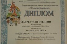 1 декабря 2018 года на Международном конкурсе "Музыкальный Форсаж" в Казанском Институте Культуры и Искусства выступила ученица 2 класса ДМШ 14 Ильина Карина, класс преподавателя Лупандиной Гюзель Борисовны. В номинации дуэт ( флейта-фортепиано) Карина Ильина с Алиной Павловой ( учащейся ДШИ 4) исполнила "Хоровод" Баклановой. Жюри оценило исполнение и присвоило Карине и Алине звание Лауреатов 3 степени. Поздравляем с успехом! 03.12.2018