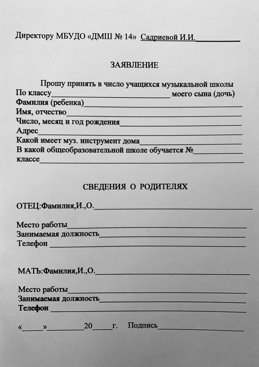Бланк подачи заявления